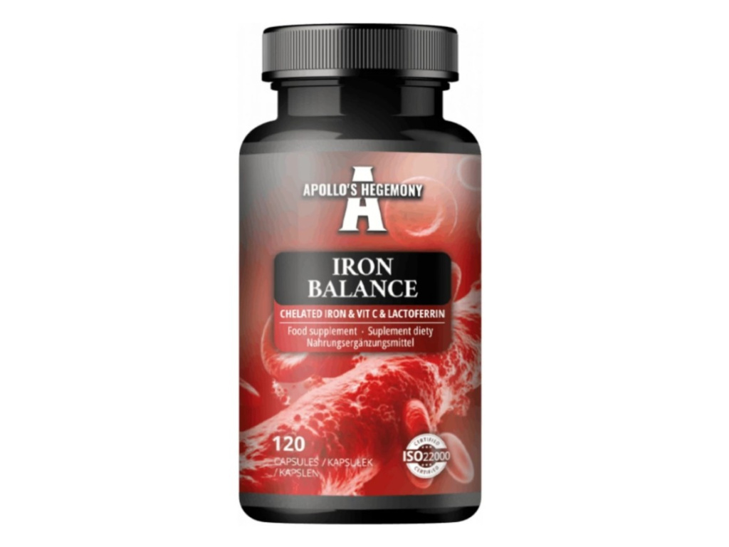 Apollo's Hegemony Iron Balance Chelated Iron & Vit C & Lactoferrin, 120 kapslí Šetrné k žaludku, doplněk stravy