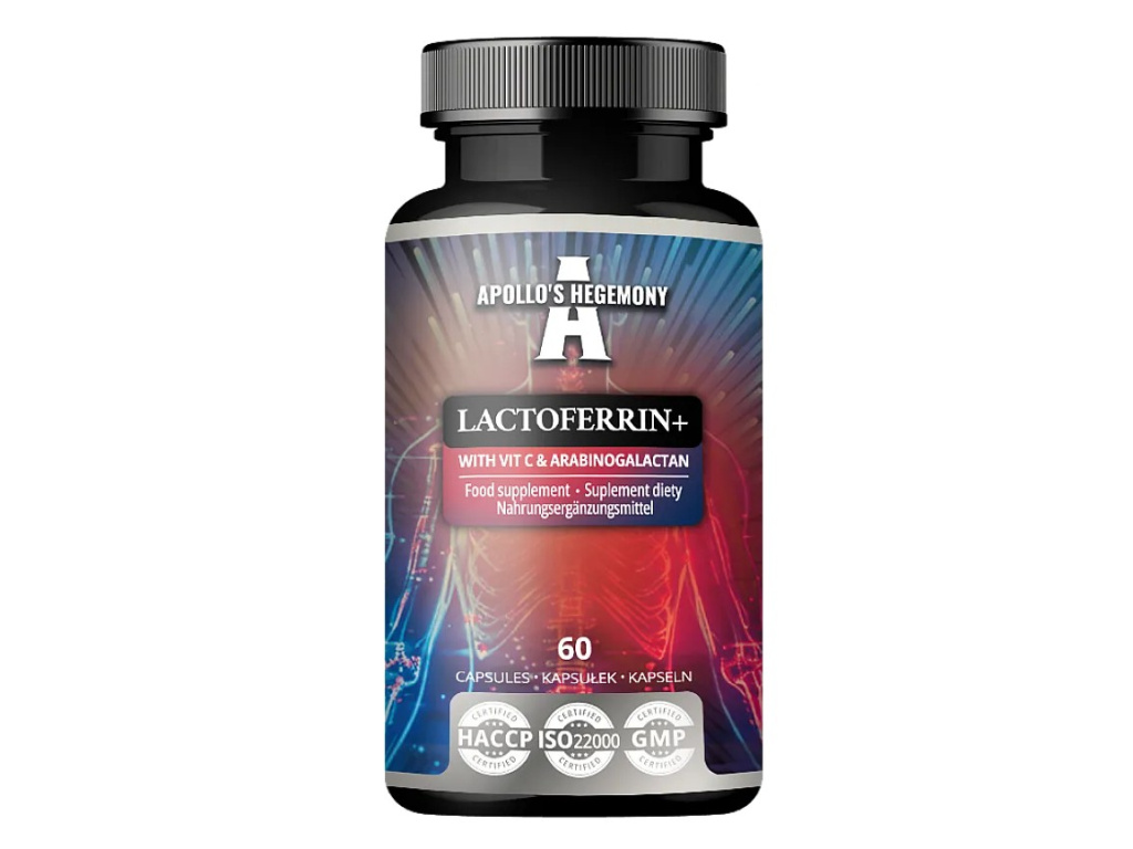 Apollo's Hegemony Laktoferin+ s vitamínem C a arabinogalaktanem, 60 kapslí 100 mg čistého laktoferinu, doplněk stravy