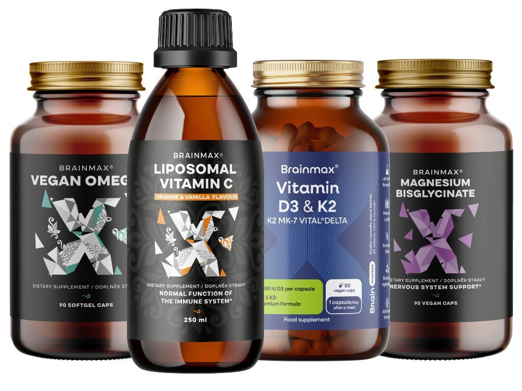 Dejte svému tělu nový jarní impuls. Easter Reset Pack kombinuje pečlivě vybrané základní nutrienty pro podporu imunity1,2, zdraví kostí2,5, mozku3 a srdce4, činnosti svalů5 a nervové soustavy5. Brainmax Lipozomální vitamín C má vysokou vstřebatelnost a spolu s vitamínem D podporuje imunitní systém. Vitamín D navíc přispívá k normálnímu stavu a kostí a využití vápníku v těle. Hořčík ve vysoce vstřebatelné formě bisglycinátu přispívá ke snížení míry únavy a vyčerpání. Balíček uzavírá Brainmax Vegan omega z řas, která podporuje mozek3, zrak3 a srdce4. Ideální sada pro snadný, kompletní start do jara nebo po náročném období.