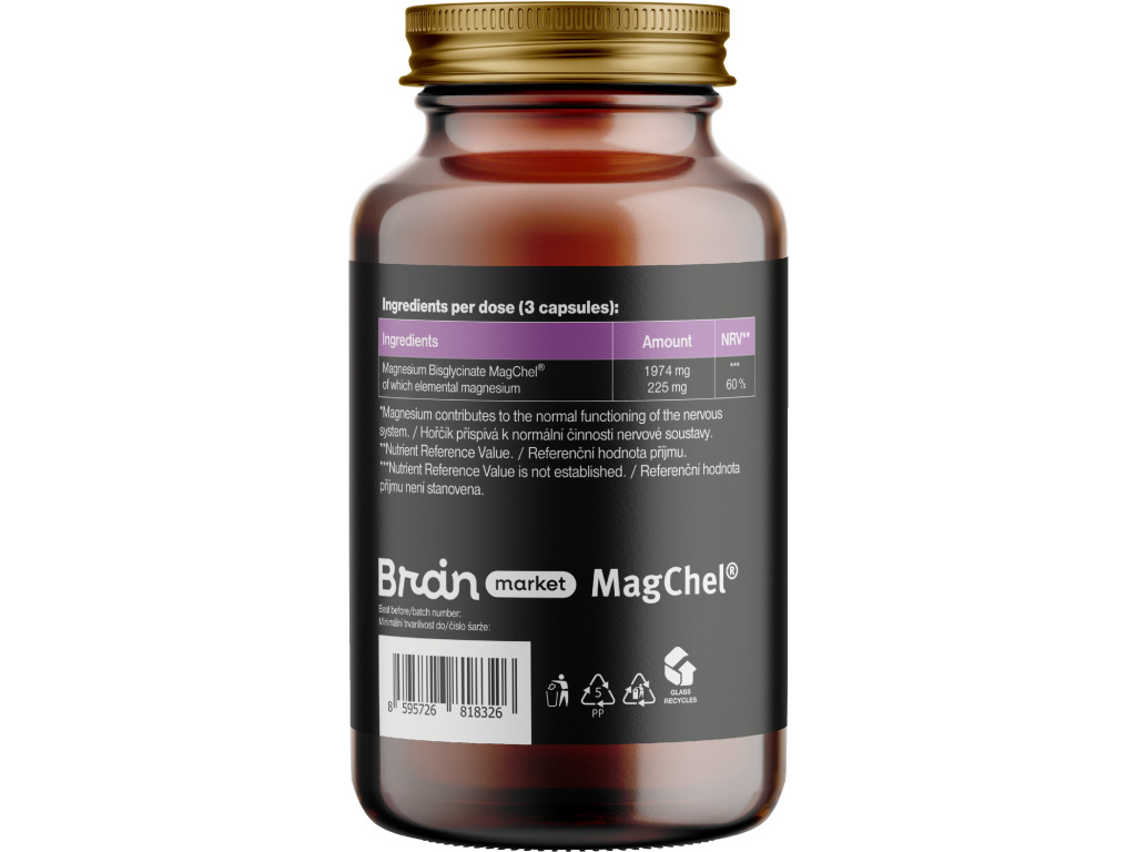 BrainMax Magnesium Bisglycinate obsahuje chelátové magnézium prvotřídní kvality MagChel®, jméno, které je již více než 40 let spojeno s nejpřísnějšími podmínkami a s jedním z nejlepších a nejčistších hořčíku na světě.