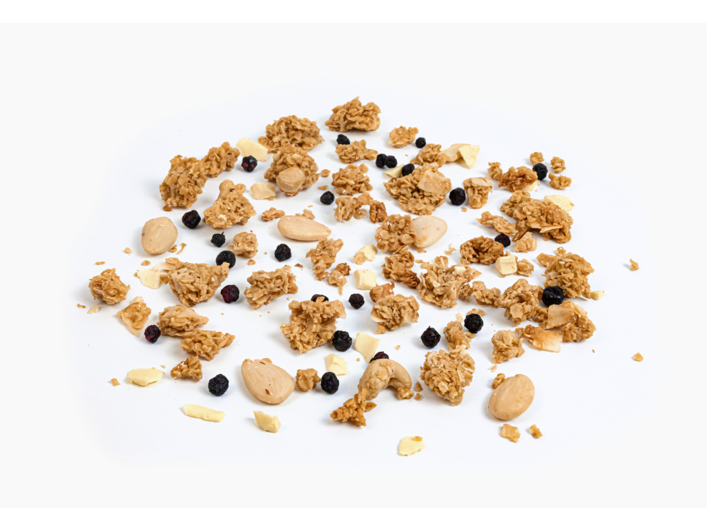 Základem opravdu velkých a na jazyku se rozplývajících kousků nové Blueberry Cheesecake granoly jsou BIO bezlepkové ovesné vločky. Na nejkřupavější textuře se podílí poctivá dávka mandlí, kešu ořechů a kokosových chipsů. Explozi chutí podtrhují svěží kyselkavé BIO lyofilizované borůvky a exotická chuť kokosu.
