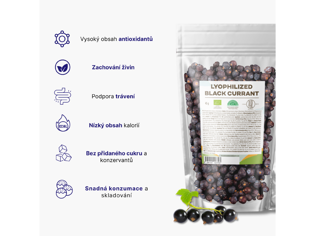 BrainMax Pure® Lyophilized Blackcurrant, Lyofilizovaný černý rybíz, BIO, 45 g *CZ-BIO-001 certifikát// Expirace 11/12/2025