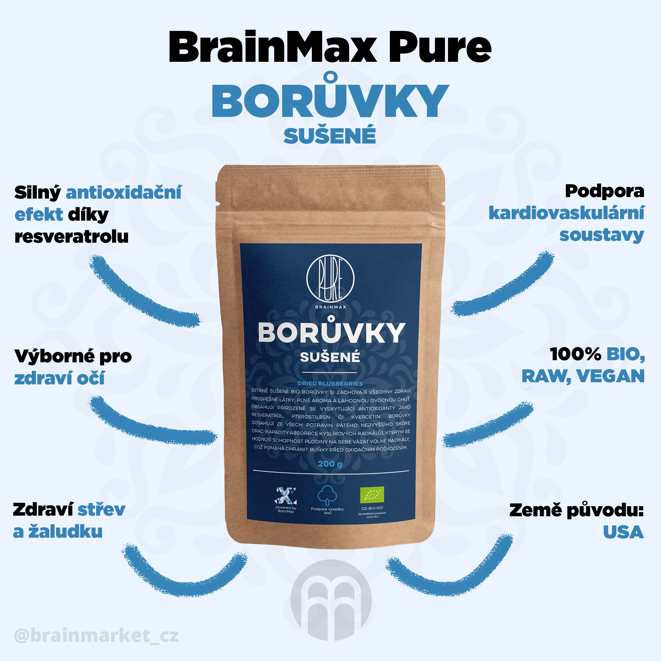 BrainMax Pure Borůvky sušené BIO, 200 g