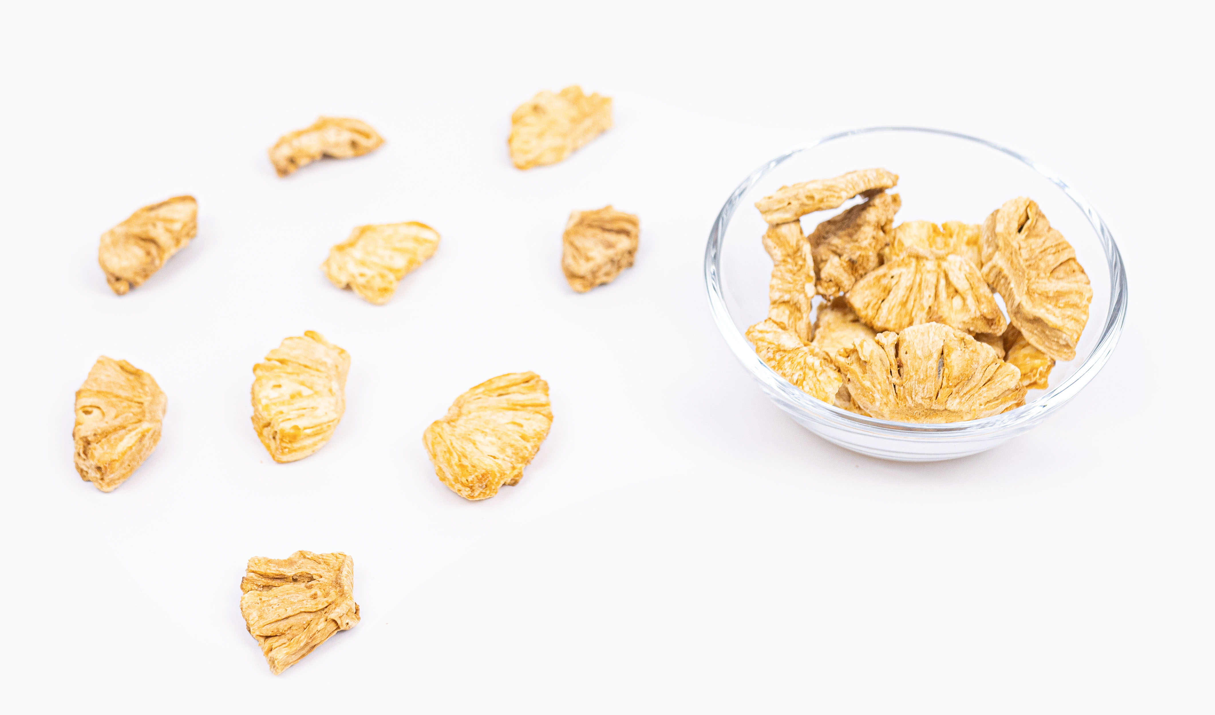 Ananas je známý pro svou přirozeně sladkou chuť a rozmanité přírodní složky, včetně vitamínu C, kyseliny listové, manganu či enzymu bromelainu, který mu dodává typické aroma a chuť. Náš ananas je sušený mrazem v BIO kvalitě a neobsahuje pesticidy ani těžké kovy, neboť je vypěstovány v ekologickém zemědělství.