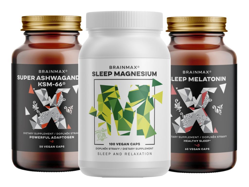 Odpoledne - 1 kapsle BrainMax Ashwagandha. Pokud máte potíže se štítnou žlázou, doporučujeme se nejdříve zeptat svého lékaře, jestli je zrovna pro vás ashwagandha vhodná. K večeru - BrainMax Sleep Magnesium®, 320 mg, 100 kapslí. 30 minut před spaním - 2 kapsle BrainMax Sleep melatonin