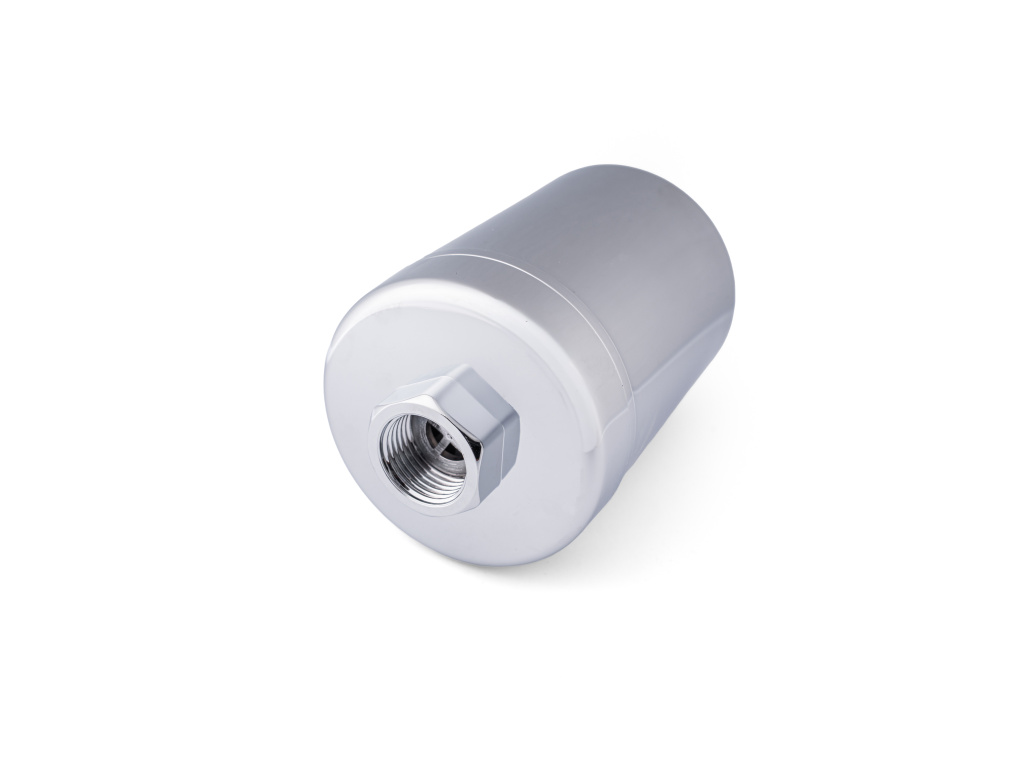 Filtr je vyroben z kvalitního pokovaného těla a certifikovaného aktivního uhlí, které zajišťuje dlouhou životnost, mechanickou odolnost a stabilní průtok vody. Základ tvoří pokovené tělo, které chrání vnitřní filtrační médium a zároveň působí elegantně. Uvnitř se nachází filtr s aktivním uhlím, přes který voda během sprchování plynule protéká. Aktivní uhlí redukuje zákal i pachy.