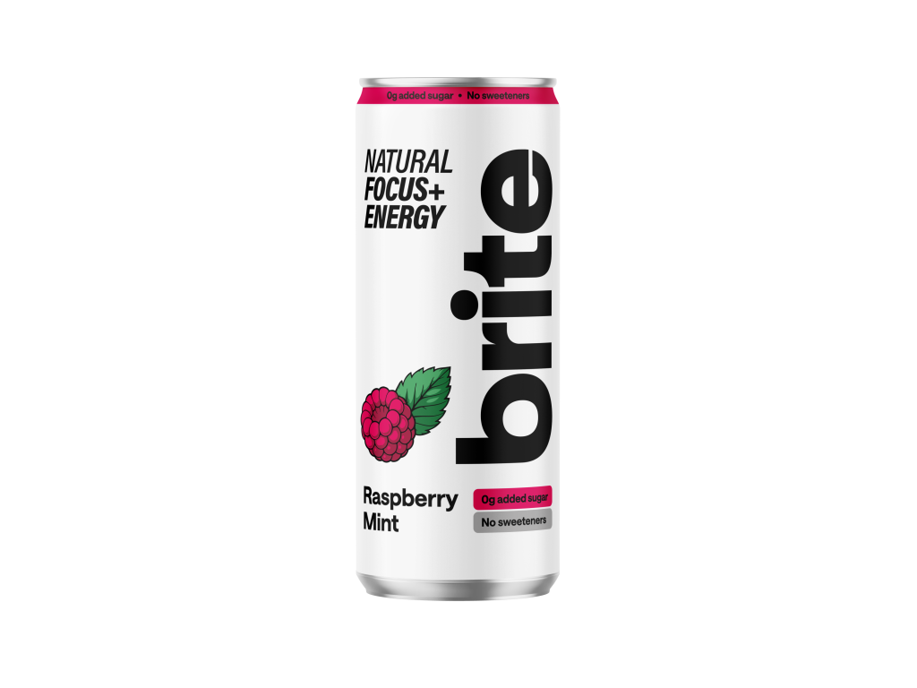 Brite Natural Energy Drink Rapsberry Mint, Energetický sycený nápoj, Malina a máta, 330 ml Sycený nápoj s vysokým obsahem kofeinu