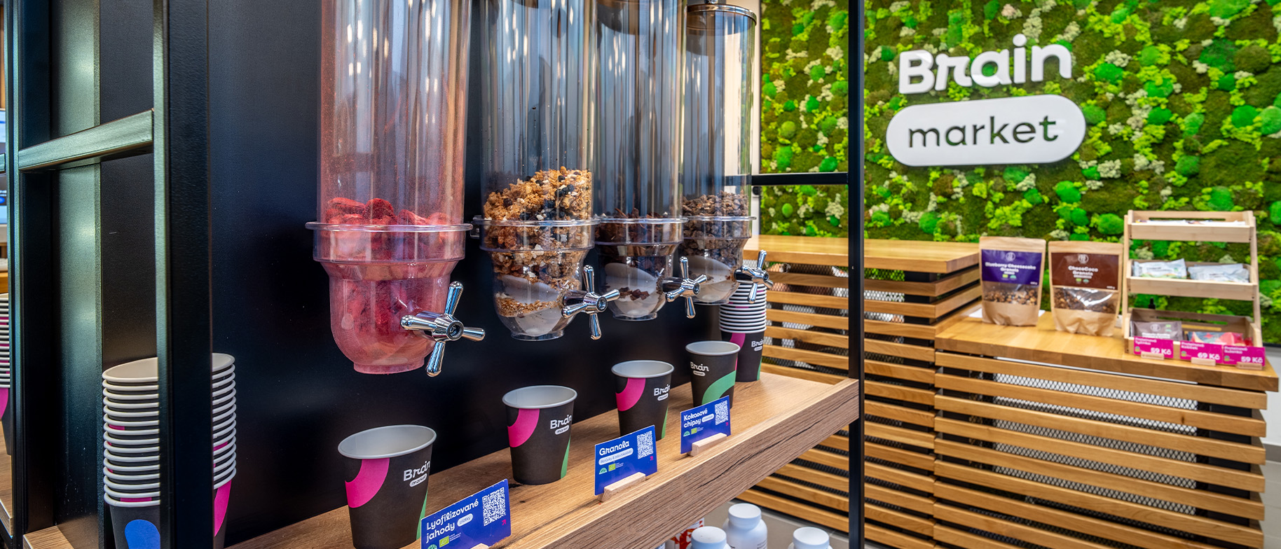- Sortiment BrainMarket naživo: Na internetu si přečtete složení a recenze, ale chuť a vůni k vám do obýváku zatím poslat neumíme. V prodejně máte hned jasno.