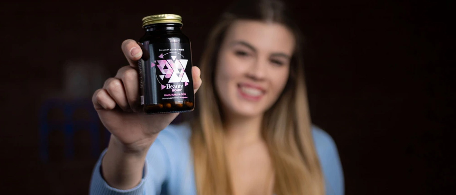 - Kolagen: Kolagen je bílkovina, která je přirozenou součástí těla, a proto se v doplňcích pro vzhled objevuje často. Zaměřte se na typy kolagenu i kombinaci s vitamínem C.