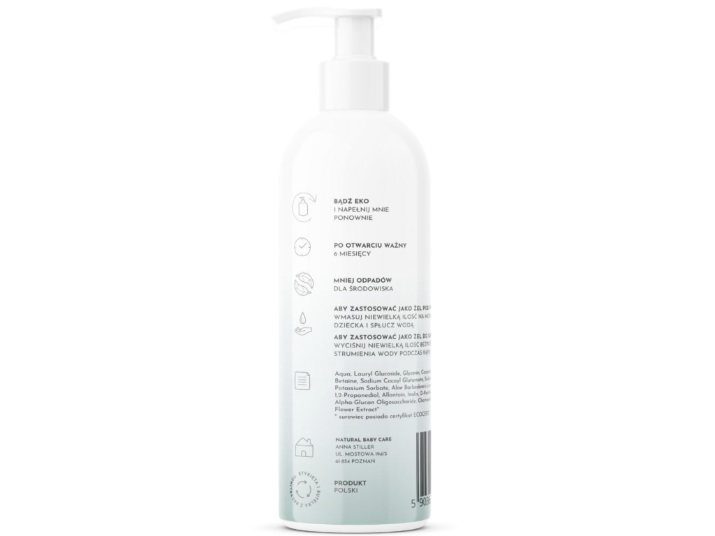 Přírodní dětský koupelový gel je ideální pro každodenní použití pro nejnáročnější dětskou pokožku.