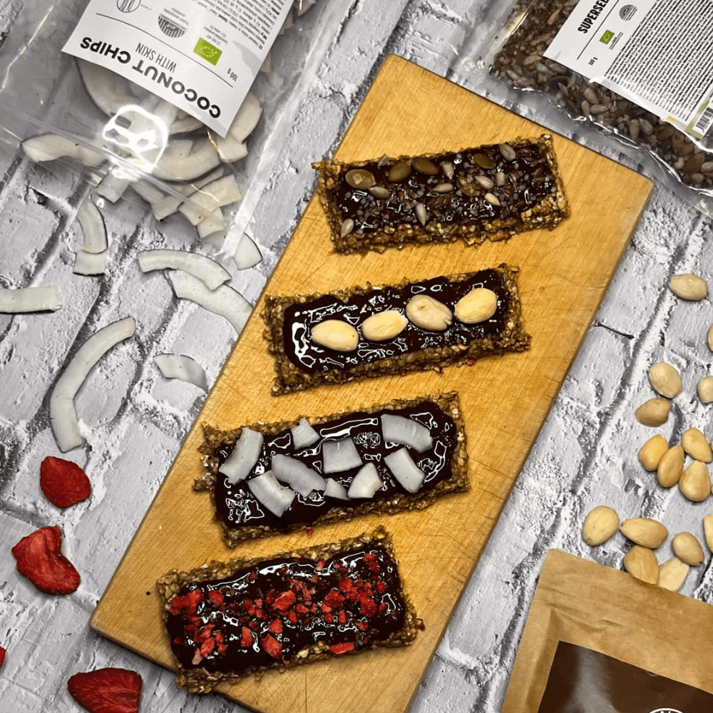 - Já zdobila lyofilizovanými jahodami, mandlemi, kokosovými chipsy a semínky.