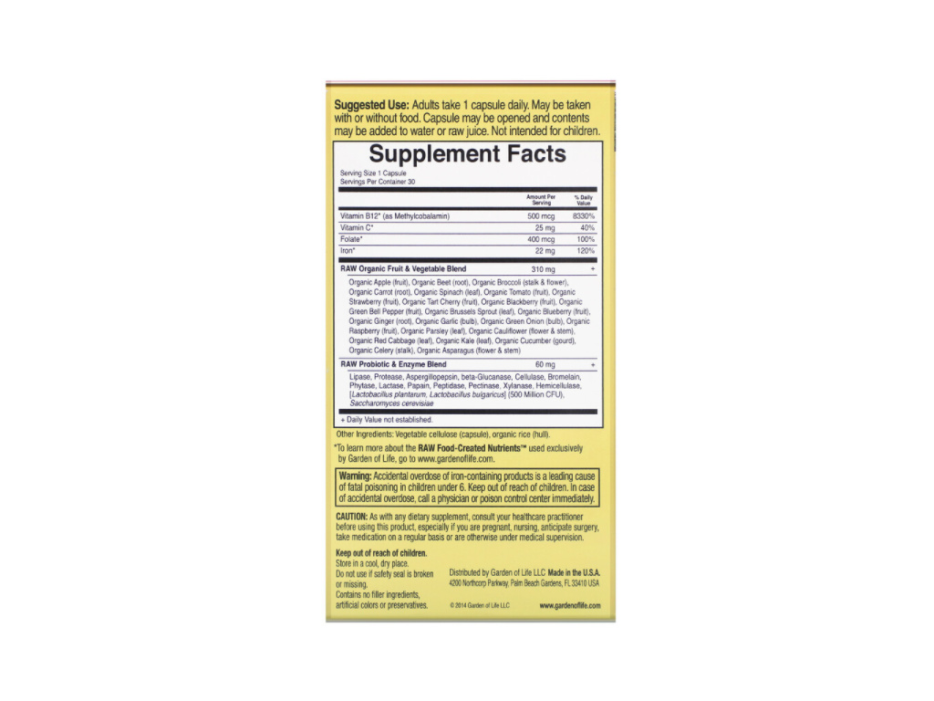 Garden of Life Vitamin Code RAW Iron (22 mg železa), 30 rostlinných kapslí
